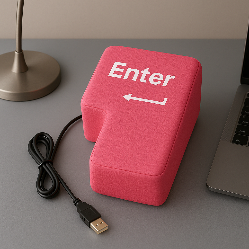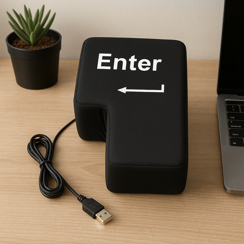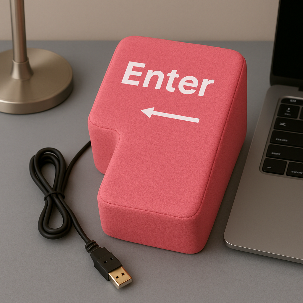 Miękki, wielki antystresowy przycisk ENTER. Klikasz – ulga. Zero hałasu, 100% satysfakcji. Idealny na biurko, sprawdza się doskonale podczas gier i pracy.